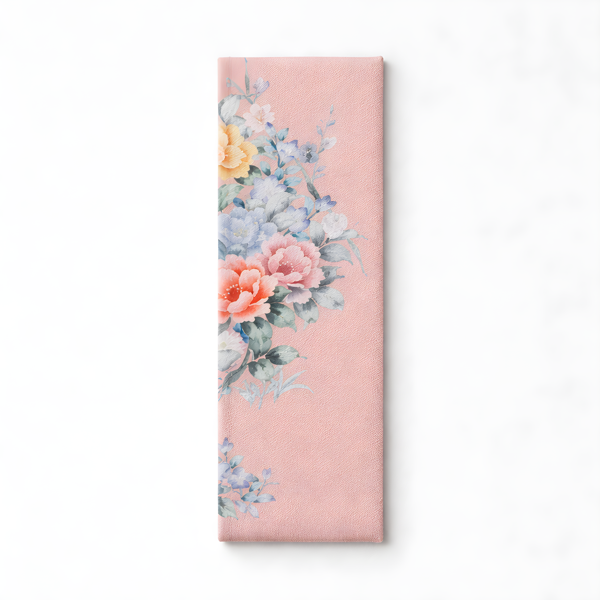 The beauty of colorful peonies set against a soft mauve backdrop. This 100% silk scarf makes for a versatile accessory for your wardrobe.