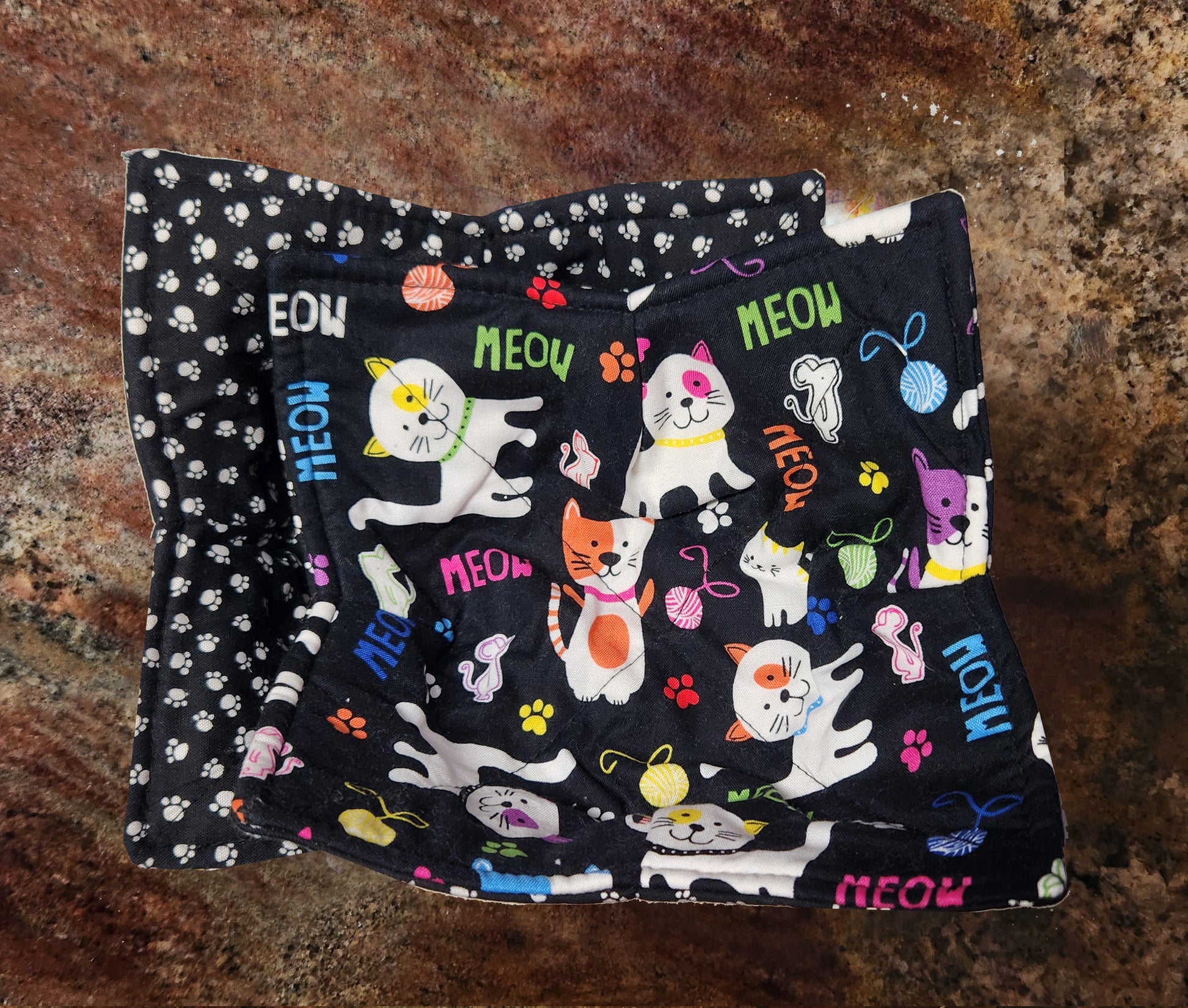 Set of 2 Reversible Microwave Bowl Holders-Meow